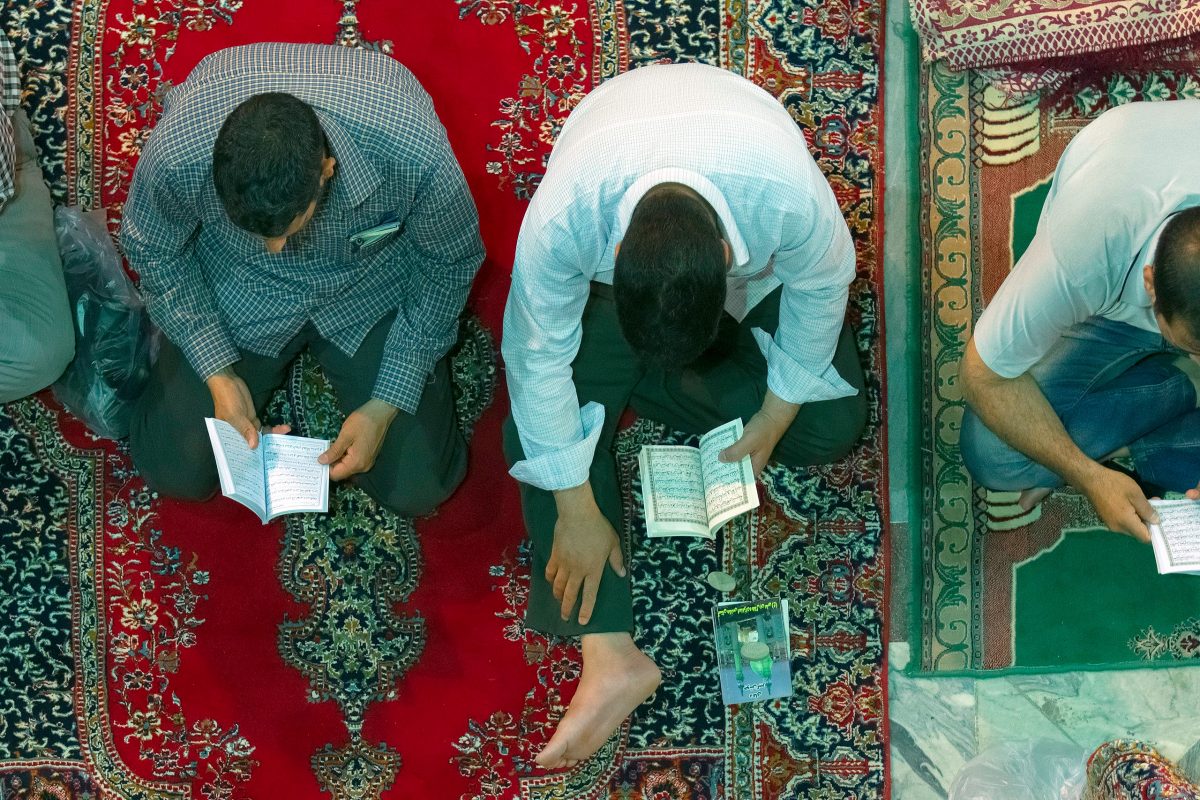 In some communities, Muslims come together and stay awake all night praying and reading the Qur’an. This photograph shows a celebration of Laylat al-Qadr in Isfahan, Iran.